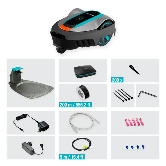 - Im Lieferumfang enthalten: 1 x GARDENA smart SILENO city 600 m² Set, inkl. 1 x smart gateway, inkl. 1 x Ladestation, inkl. 1 x 150 m Begrenzungskabel, inkl. 200 x Haken, inkl. 4 x Verbinder, inkl. 5 x Anschlussklemmen