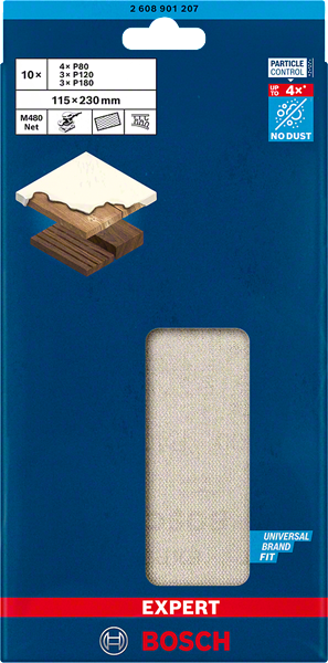 Bis zu 4-mal bessere Staubabsaugung als ein Standard-Schleifpapier - Staub Du bist damit bedeckt, du kannst ihn schmecken. Er setzt dein Schleifpapier zu, wodurch dieses praktisch unbrauchbar wird. Er bedeckt alles im Raum und durchdringt das ganze Haus. Staub ist der größte Nachteil beim Schleifen. Doch durch das Particle Control-System hat sich dieses Problem weitgehend erledigt. Bosch Particle Control stellt sicher, dass alle Staubpartikel in dein Vakuum oder deinen Filter gesaugt werden. Das Bosch Expert M480 Netzstruktur-Schleifblatt steht an vorderster Front dieses Systems: Partikel werden gerade durch das offene Netz geführt, anstatt die Oberfläche zuzusetzen oder die Luft zu verschmutzen. Dies sorgt für ein hohes Maß an Effizienz und eine sehr lange Lebensdauer. Vielen Experten fällt es schwer zu glauben, dass wir das größte Problem beim Schleifen beseitigt haben. Es war zwar nicht einfach, aber wir haben es geschafft. Schleifen ohne Staubbildung mit dem Bosch Expert M480 Schleifnetz. Einfache Befestigung mit Klettverschluss.