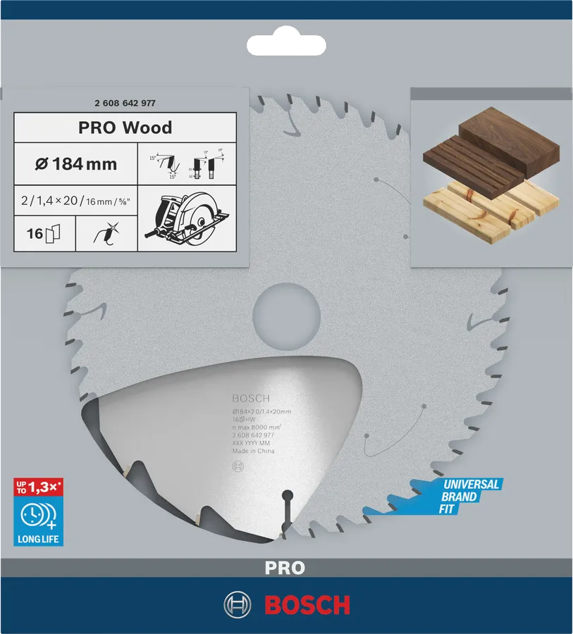 - Präzise Schnitte in Holz und Holzwerkstoffe durch hochwertiges, speziell gehärtetes Kreissägeblatt